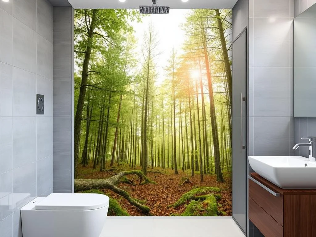 Geometrische Muster, abstrakte Kunst oder grafische Elemente können einen modernen, individuellen Look schaffen. Diese Designs sind besonders in zeitgemäßen Badezimmern beliebt und können gezielt Farbakzente setzen.