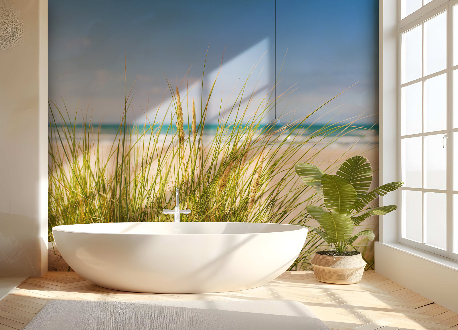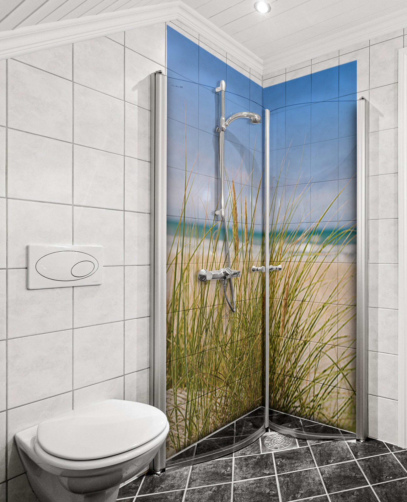 Eck Duschrückwand Rückwand Strand mit Dünengras und Sand